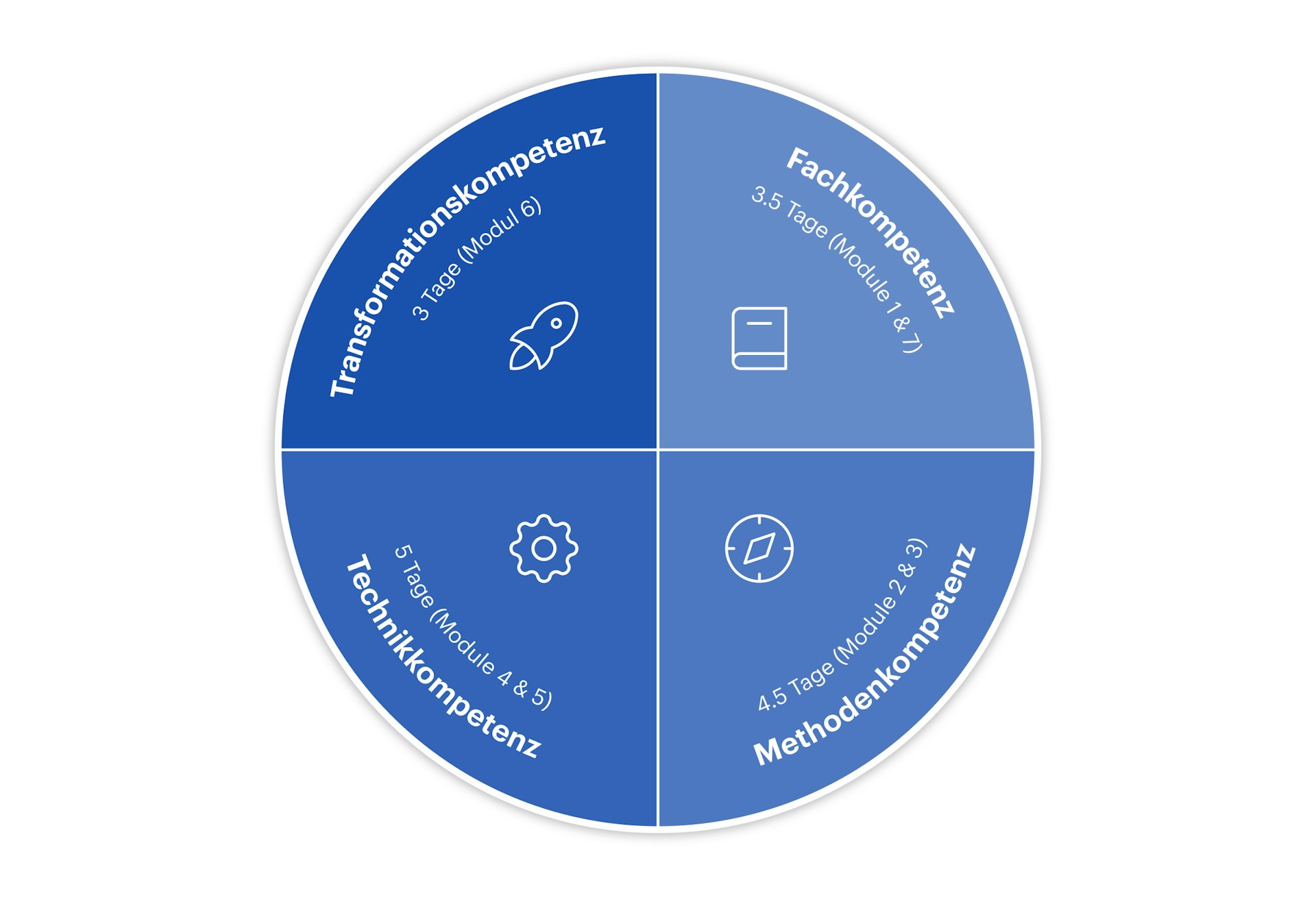Vier Kompetenzbereiche: Die maximale Umsetzungskompetenz erzielen Sie durch einen systematischen Auf-bau Ihrer Fach-, Methoden-, Technik- und Transformationskompetenz.